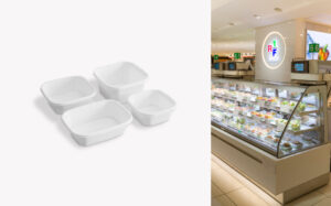全社で取り組む「包装材における環境対策」として、LIMEX素材を使用した惣菜容器を採用。