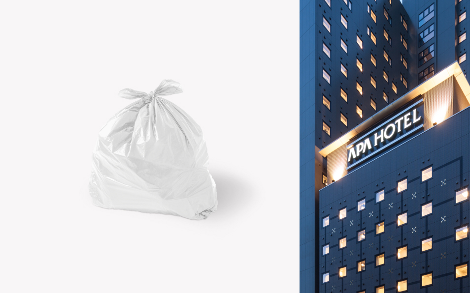 従来使用していたPE製の客室ゴミ箱用ポリ袋から「LimeAir Bag」への切り替えで、環境負荷低減と軽量化を実現。