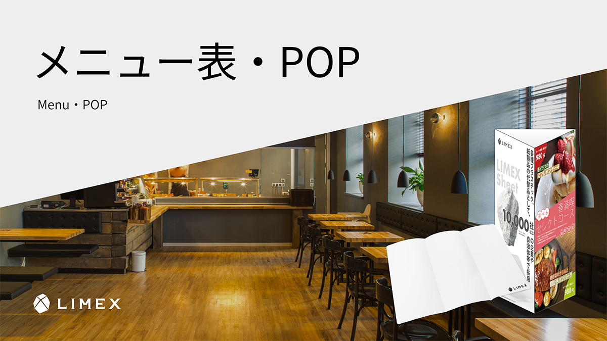 LIMEX素材特有の「耐久性」を活かして、回転率の高い飲食店のメニュー表に採用。