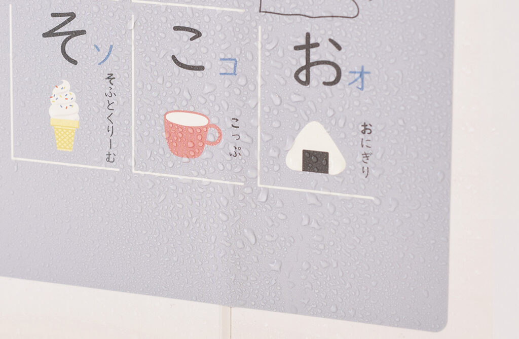 KEYUCA様: まずは耐久性と使い勝手です。おふろポスターは何度も貼り直す可能性が高く、湯や洗剤がかかる場所でもあります。印刷面が滲まないか、耐久性に問題ないか、安心・安全に使えるかを確認しました。